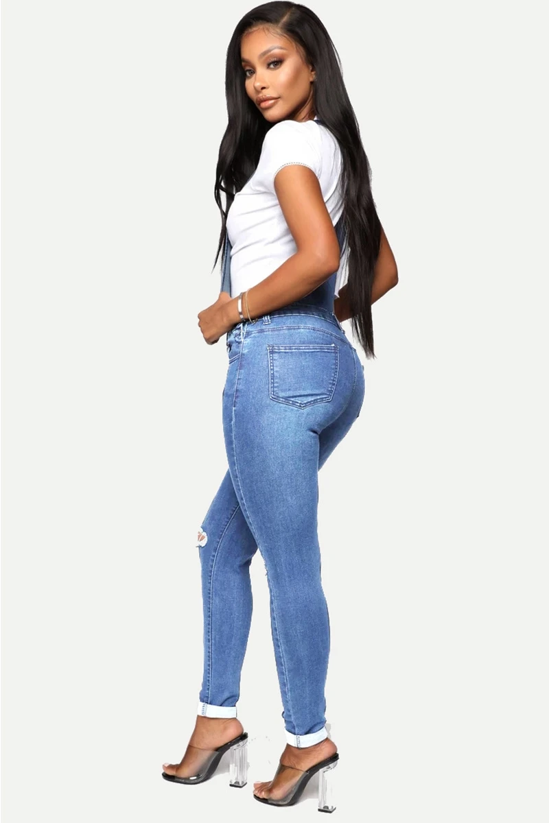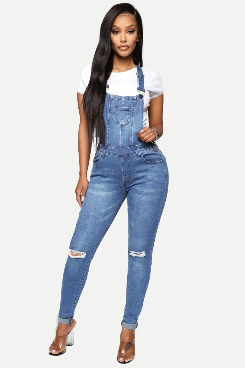 Very best New Spring Women Overalls Cool Denim Jumpsuit Ripped Holes Casual Jeans Ladies Sleeveless Skinny Ju